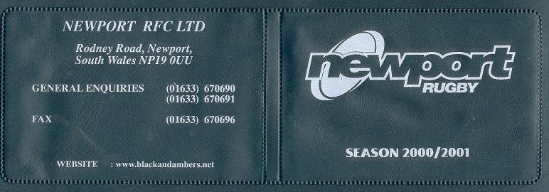 2000-01 saw Springbok legend Gary Teichmann continue as captain. Springbok prop Adrian Garvey, former Newport lock Ian Gough, flanker Peter Buxton, hooker James Richards, Irish wing Matt Mostyn, utility back Emyr Lewis (son of coach Allan), scrum-half Darren Edwards and ex-Italy / Australia fullback Matt Pini all joined Newport RFC while Justin Thomas, Mark Workman, Andrew Gibbs and Gary Hicks left and joined other clubs. Franco Smith returned to South Africa and hooker Damien Cummins returned to Australia.