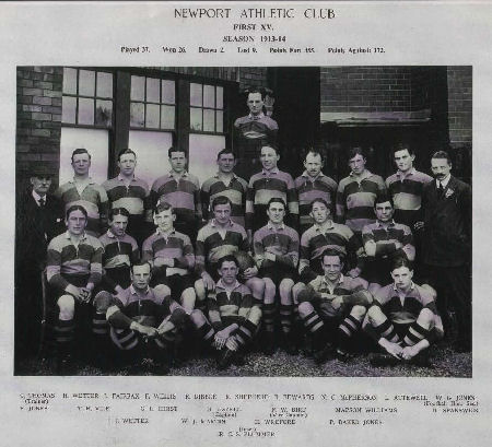 1913-14 under Harry Uzzell started with defeat at home to Bristol and a further 3 defeats followed before December. Newport then beat Southampton Trojans 37 v 0 with wing George Hirst scoring 5 tries. In February Newport took Gloucester's home record.