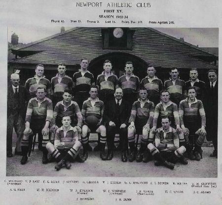 A number of new players came to the fore - Bill Johnson, a wing from Pill Harriers, Jim Hawkins, a scrum half from Risca and Albert Fear, a wing forward from Abertillery. John Evans moulded a collection of mainly young forwards into one of the finest packs in the country. Albert Fear, Fred Emms, W. G. C. Williams, Jack Bowen, George George and Vivian Law completed a pack that gained high respect. Notable among the backs were Jack Adams and Harry Wyles and several players were tried at outside half before Joe Dunn, a young Newport High School boy settled down to be Hawkins's partner. Towards the end of the season, Bob Allen joined the Newport police. His only football experience was as a professional soccer player with Wolverhampton Wanderers! He decided to try his hand at rugby and later developed into one of Newport's most talented players. This was only after the Welsh Rugby Union amended its laws on professionalism.