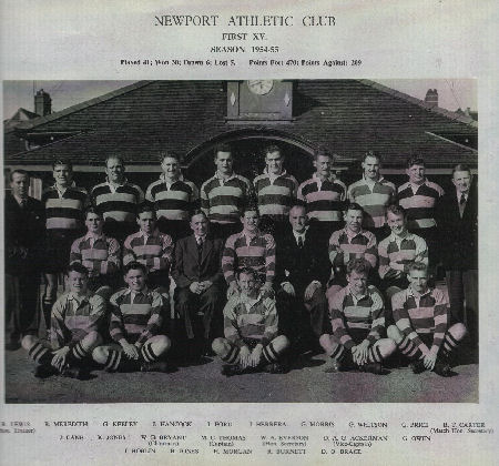 Captain Malcolm Thomas missed half the 1954-55 season with a broken leg and Doug Ackerman took over. Malcolm Thomas played tremendously well when he returned while Roy Burnett and Brace were probably the best half-backs in the country. Brian Jones and John Roblin performed well at centre resulting in Ken Jones scoring 21t and John Lane 23t.
