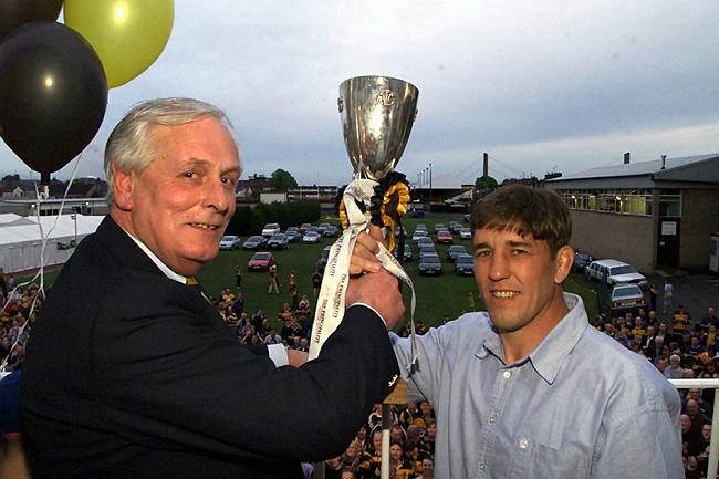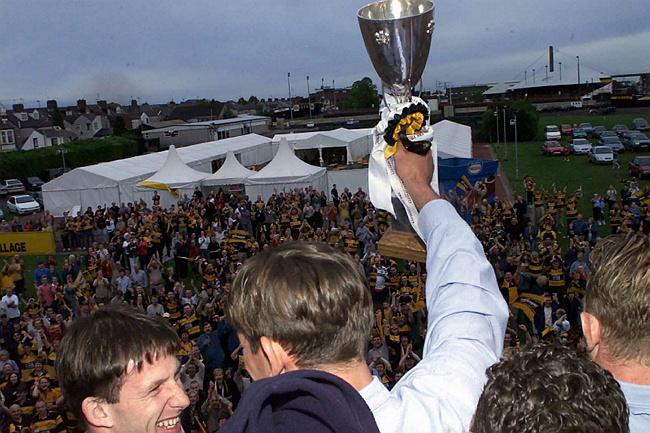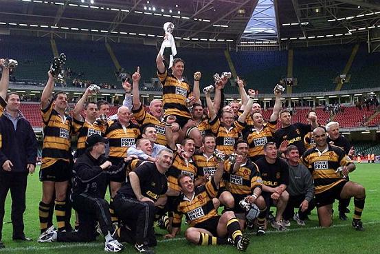 And so the team that Englishman Tony Brown had assembled, Welshman Allan Lewis had coached, and Springbok Gary Teichmann had captained, had won the Welsh Cup. The team may have come from all parts of the rugby world but on this day they represented Newport and proudly wore the Black and Amber. There were former Springboks Gary Teichmann and Adrian Garvey, former All Black Shane Howarth, the consummate professional who nursed injury stricken Newport home, Canadian Rod Snow, one of the most popular players ever to play for Newport, Fijian captain Simon Raiwalui, Australian/Italian Matt Pini and Irishman Matt Mostyn. There were also of course Welshmen - Ian Gough, Matthew Watkins, Andy Marinos and Jason Forster - all were to play for Wales in the future, as well as youngsters, Emyr Lewis, Dale Burn, Jamie Richards and Peter Buxton. Last, but not least, there was replacement lock Gareth Taylor, a very underated player but not at Rodney Parade where he will always be held in high regard. Fittingly Gareth had the last touch of the ball when he kicked it long and hard out of play to signal the end of the match. After a lap of honour and a shower it was back to Rodney Parade to be greeted by thousands of ecstatic Newport fans. Gary Teichmann had to address the crowd with a megaphone.