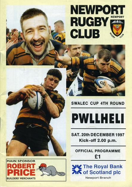 "Today Newport can put their league worries away as they entertain Pwllheli from North Wales in the WRU Cup Competition. Pwllheli are presently lying third in Divsion 6B West behind Penygroes and Morriston. In the last round of the competition they defeated Vardre United 47-11 at home to join fellow North Walians, Wrexham in the 4th Round Draw. Other interesting ties include Cup holders Cardiff v Abercarn and Pontypridd v Bonymaen, with a remote chance of an upset at either Cwmllynfell v Neath or Garndiffaith v Bridgend. However, this season the odds are stacked heavily in favour of the Premier Clubs because in exchange for coming into the competition at an earlier stage the eight clubs have been seeded to meet in the Quarter Finals. Hence there is no possibility of a repetition of a Newport v Cardiff game being drawn in an early round, as was the case last season. The advent of professionalism has ensured that the gulf between the Premier sides and the teams in the lower division has widened and realistically only the likes of Caerphilly or Aberavon should trouble any of the premier sides. Cup surprises are at a premium and similar results to last season's Felinfoel 10 Pontypridd 90 and Cardiff 99 Dinas Powys 7 are likely to appear more regularly. Bonymaen are mid-table in Divison One but one can expect a 50-point reversal at Pontypridd and Abercarn will be successful if they keep Cardiff to under 75. What of Pwllheli's chances? Carl Sitene scored 4 tries in the last round and Mark Frost 22 points including 2 tries, but realistically are unlikely to follow Ystradgynlais and Penclawdd in providing ignominious Cup exits for Newport."