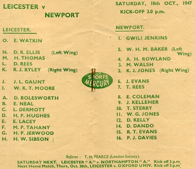 "Newport have brought with them a very strong side including K. J. Jones, the Welsh International flyer. A. H. Rowland, the left centre, is at present at Loughborough College."