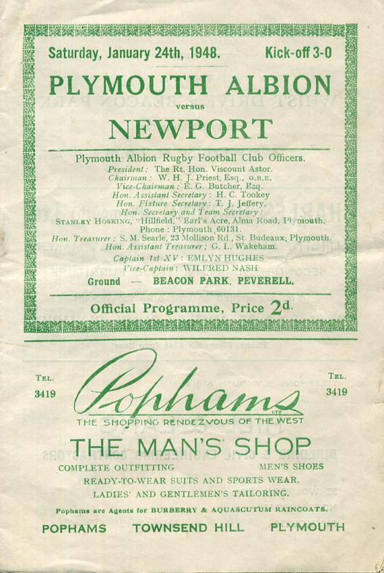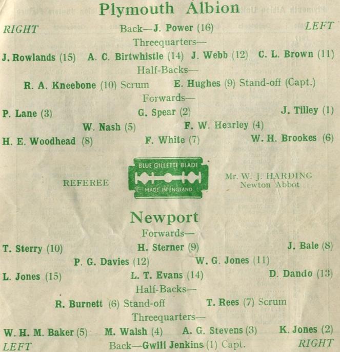 "It would be difficult to find a more popular fixture on the Albion 'Card' than these Usk Siders whom we are delighted to welcome to Beacon Park, and we take this opportunity of saying "Thank you, Newport " for the very happy times we have had on so many occasions at the Athletic ground."