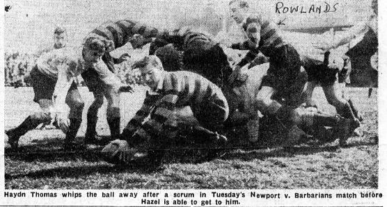 "If one's mind travels back to the Barbarians' match of last Easter Tuesday we would suggest that, in defeating Newport by 19 points to three, the Barbarians on that day gave the finest display of Rugby that has been witnessed at Newport for many a long year. There was no vestige of disgrace in defeat, rather let it be said that the Newport side that day gave all they knew. But they came against a team of very great players, all of whom in their best form, contributed to a display that is of happy memory."