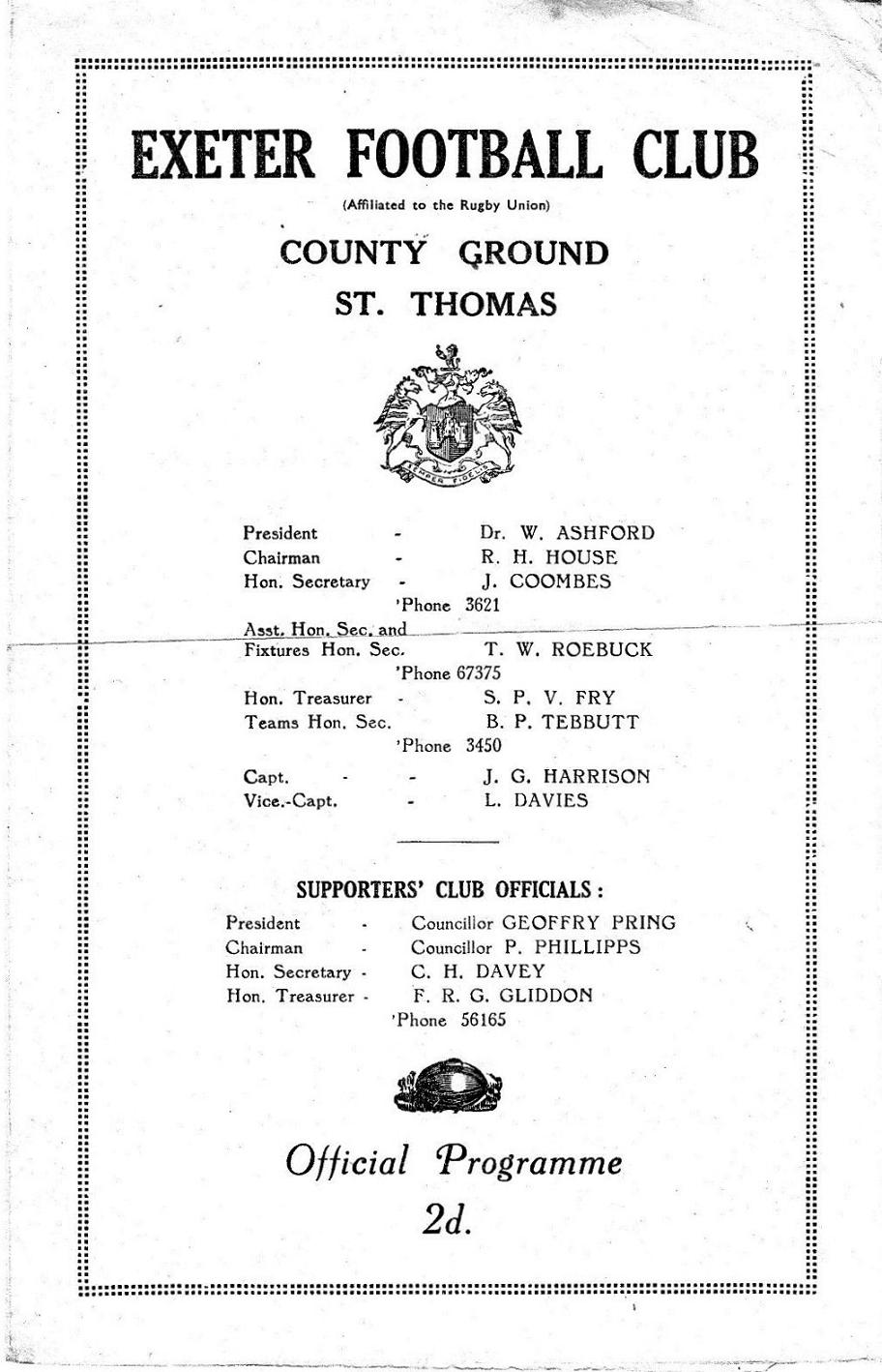 "This is our last game of the season and I wish to thank all members and supporters who have given the Club such good support at our games, to the members of the Supporters' Club for all the good work they have put in and lastly to, the Lady members of the Supporters' Club for so kindly providing teas for all the home games, their work is very much appreciated by the players and officials of the Club."