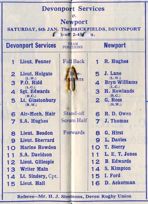 "However, Services also have some good substitutes and are much more fortunate in this respect than in previous seasons. Where we always seem to lose deal this season is in the lack of size in the scrum, as in no game so far have we been able to approach the weight of our opponents."