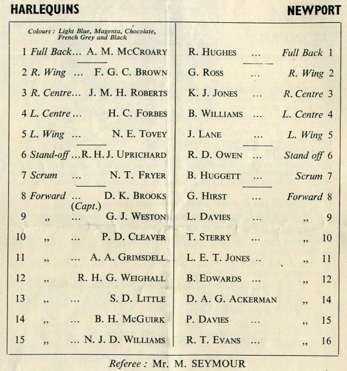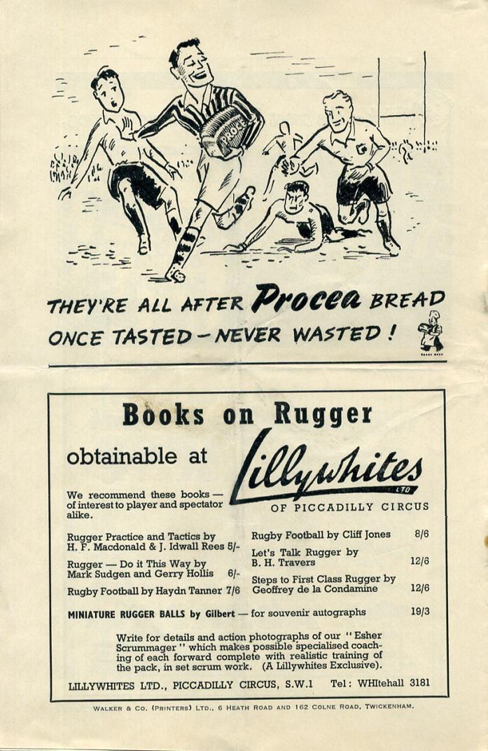 "It is a great pity that Roy Burnett is not with us to-day owing to a dislocated shoulder, which has also unfortunately compelled him to miss a well-earned Welsh cap."