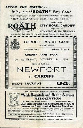 "Today's first meeting of the season between the greatest and friendliest Rugby football rivals in the world - Cardiff and Newport - has been highlighted in the Press. They say that the -result of the match is more open than any that have gone before, since the War."