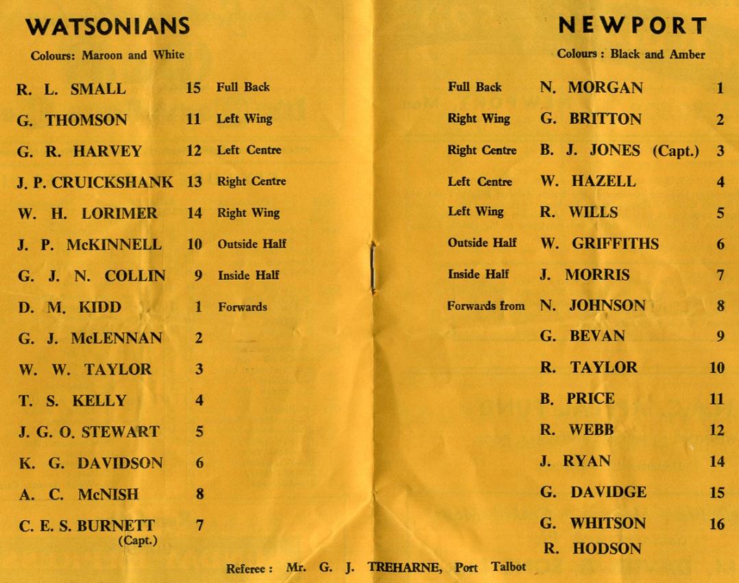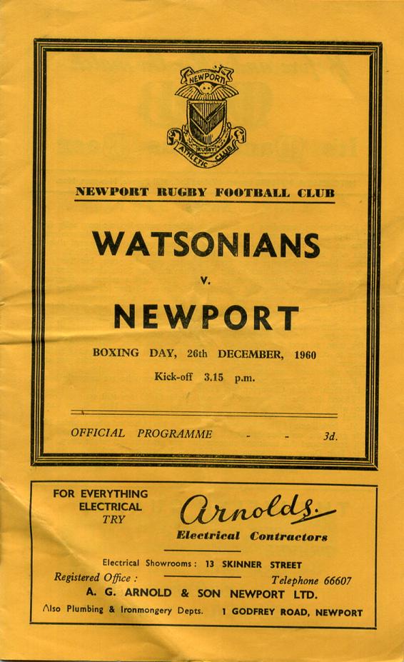 "Duty having been done by remaining indoors yesterday, we now sally forth, still full of good cheer, ready to participate in good natured seasonal entertainment. Unless we have over-indulged at the festive board we can rest assured that our spirits will be further enlivened by the excellent company from North of the Border. Many fine games have been witnessed over the years, but for a real shock, we have only to go back to last year when the fiery Scots almost mesmerised us into defeat. We ultimately shared 32pts. They have a strenuous programme playing Swansea, Newport and Cardiff in the space of four days. They know that they are always welcome here and we wish them a happy tour."