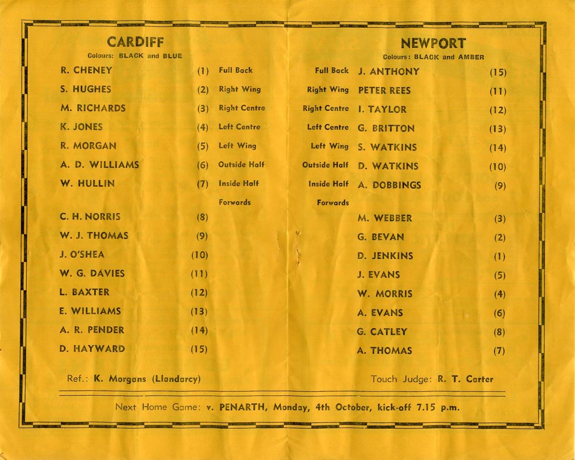 "We were hoping that Cardiff would come to us unbeaten but they lost this tag in a hard fought game at Bridgend last Wednesday night by a mere 3 points to nil."