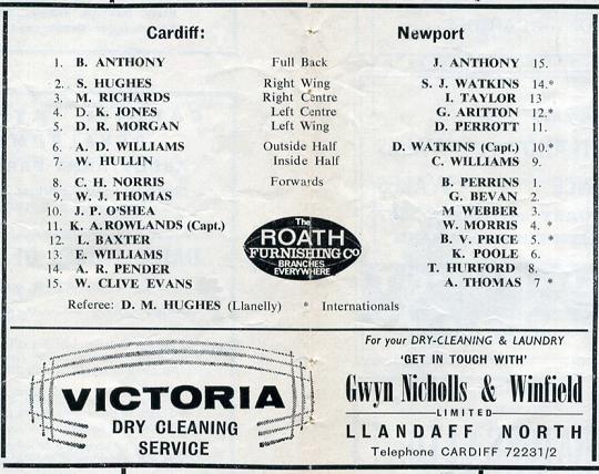 "We welcome our greatest rivals to the Arms Park, for whenever the two clubs meet nothing can be more certain than that the result will be difficult, to forecast. No matter what the recent form of either side has been, there is always the glorious uncertainty that one may never know what might happen when Greek meets Greek. Fortunately there has recently not been so much of a stalemate as in years gone by and the last game at Newport earlier this season was a delight for both players and spectators. Let us hope that today's game is every bit as exciting."