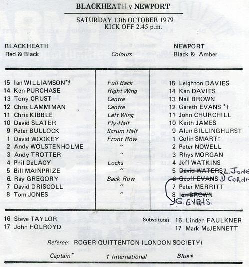 "TODAY'S VISITORS. We are delighted to welcome our old friends Newport to the Rectory Field this afternoon. Our Association with this famous Welsh Club started 100 years ago, on the 20th November 1879, at Rodney Parade, and Blackheath were the victors by 46 Pts. to nil. The clubs did not meet again until 1883, when Blackheath again won, but since those early days "The Club" have found victory very hard to achieve. Thus today, we celebrate the longest English v Welsh Club fixture in rugby football history, an "Historic Occasion" of which both clubs are justifiably proud. As one would expect, there has always been intense rivalry between our clubs, but this in no way detracts from the happy relationship we have enjoyed over so many years. The great names of the past "Tottie" Carpnael, Brigadier Glyn Hughes, "Hughie", J.E.C. (Birdie) Partridge and R.T.M. Skrimshire, to mention but a few, will be looking down upon us this afternoon. May the game be worthy of their great contribution to Rugby Football. Today we also extend a very warm welcome to His Excellency The Hon. Leslie Gander The New Zealand High Commissioner."