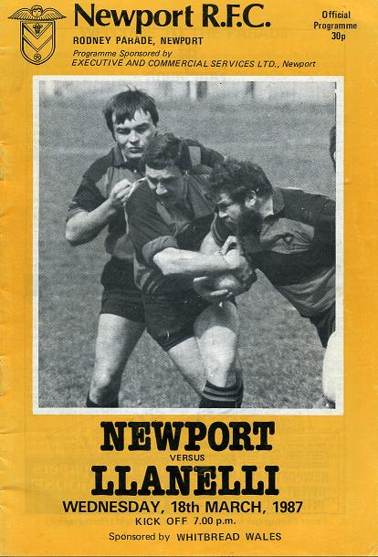 "THIS EVENING we extend a very warm welcome to our friends from Stradey Park who arrive chasing "the double", having comprehensively defeated us earlier in the season by 35pts to 7pts. The only satisfaction that Black and Amber followers achieved from that "debacle" is that 'MJW' and his team have only lost once since, and that was that never-to-be-forgotten cup game at Cardiff. Captain Phil May and his team will be very conscious of the fact that Newport have won their last 17 Club matches and that the Scarlets last won here at Rodney Parade on 31st October 1981 (10-9). He, like all Black and Amber followers, will also be aware that the selection of David Pickering and Ieuan Evans to play, and Andrew Buchanan and Jonathan Griffiths as substitutes for Wales next Saturday at Murrayfield, coupled with the loss of Phil Davies through injury, will severely deplete his team. But it is certain that Tony Faulkner and Roy Duggan will not allow this situation to create any complacency in the Black and Amber ranks, for the Scarlets have a great reputation of rising to the occasion and there are many fine players still available for selection from their strong squad."