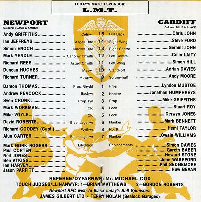 "Loyal prop Duggan's terrible ankle injury took the sparkle out of the Black and Amber's win. But, just three days later, Duggan was back at Rodney Parade hobbling up to the Brecon Lounge on his new chariot - a pair of Royal Gwent Hospital crutches - having just watched the club win 48-8 against Transvaal Pirates."