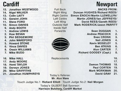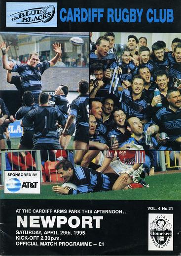 "In the meantime, it should be an afternoon of celebration, of fun and enjoyment. On the field both Cardiff and Newport for different reasons can relax; Cardiff because only a mathematical miracle can prevent the Heineken Trophy coming to the Arms Park (can Pontypridd really score 20-plus tries at triumphant Treorchy who this morning sit proudly in fourth place) and Newport because they have deservedly saved themselves from the trauma of relegation."