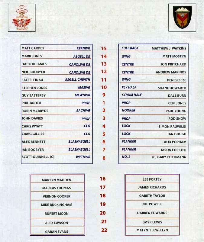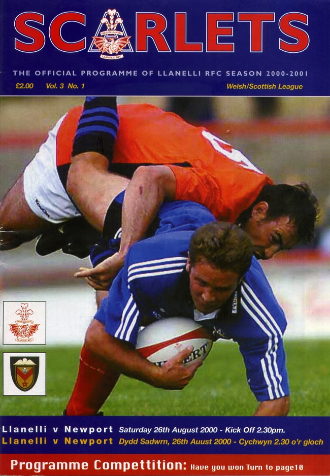 "A warm welcome to everyone to Stradey Park for another exciting season. This is the time of year when every clubs' hopes and ambitions are high. No more so than today's visitors Newport. Their revival under the stewardship of Tony Brown and their recruitment of quality players now make them challengers in all competitions. We will have to be at our very best to win. During the summer recess we have added quality players to the squad and I believe it is the strongest we have assembled for some considerable time. In adding Alex Bennett, Guy Easterby and Alex Lawson, we have brought experience, skill and strength in depth to the team. Dafydd Jones and Mike Buckingham, our other summer signings, have shown in pre-season preparations that they too will be challenging for first team places."