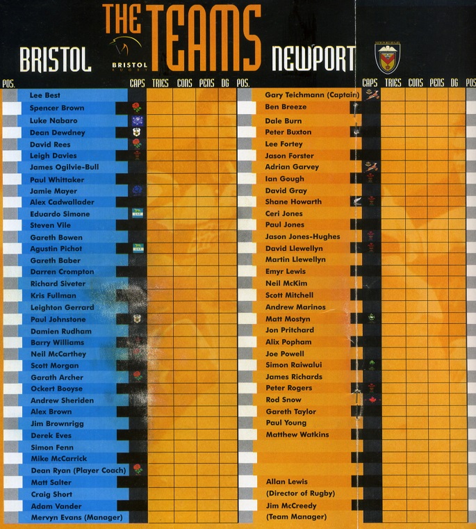 "The task now facing coach Dean Ryan is to get his side into Europe's elite and join neighbouring Bath and Gloucester in the Heineken Cup. New boy Davies apart, the side has a strong Welsh flavour with half backs Gareth Baber and Gareth Bowen behind the scrum and Barry Williams, Leighton Gerrard and Scott Morgan up front. Hooker Jonathan Evans and flanker Christian Evans left in the summer."