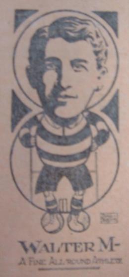 "Walter was an all-round man. He was not only a Rugby player of distinction, but he had literary gifts and powers as an entertainer. He wrote topical verse. He was at one time a regular contributor to the columns of the "South Wales Argus." He had social gifts, charm of manner. He was simple and unaffected, balanced in judgment, generously appreciative of the good qualities of others, and not in the least inclined to over estimate his own powers and success. In his earlier years before his place in the Newport team was assured, he played cheerfully for the Seconds when he was passed over for the premier team. He played for the joy of the game, and if he was not considered good enough for the first fifteen he did his best for the seconds. This willingness to take a second place was the more remarkable as he had had a distinguished career at Newport Intermediate School (now the High School), which he entered with a scholarship. He was Captain of the Hockey Team; Vice-Captain of the Association Football Team and Cricket XI; he went to the final of the School Lawn Tennis Tournament. But these boyish honours did not spoil him any more than the honours which came to him later."