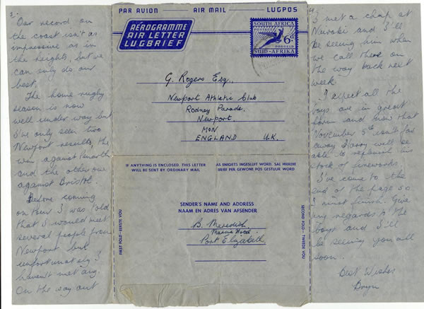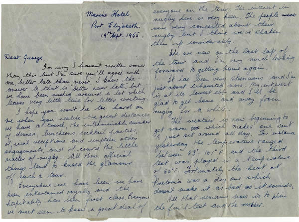 "At the end of it all one is only looking forward to getting home again and that excitement is just as intense as at the beginning of the tour. And yet, after a couple of weeks at home one thinks that it would be rather nice again to be back in Durban, Sydney or even Taranaki living the false fabulous life of a rugby tourist."