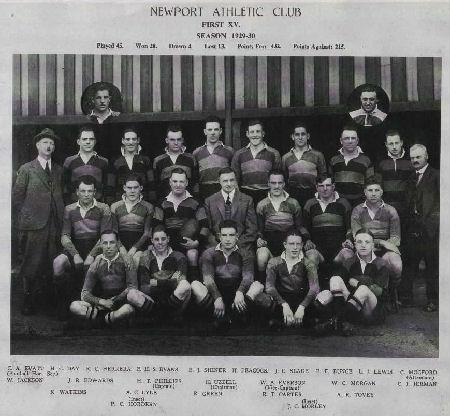 Harold Phillips was the natural successor as captain in 1929-30 when Vince Griffiths retired. A good start brought wins over Penarth, Cross Keys, Pill Harriers, Aberavon (A) and Swansea. However defeat at Pontypool was followed by a poor run with experiments being tried to halt the decline. Walter Martin was given the role of tutor of tactics and training and with a settled team there was a remarkable recovery and in mid-season Newport once more became one of the best teams.