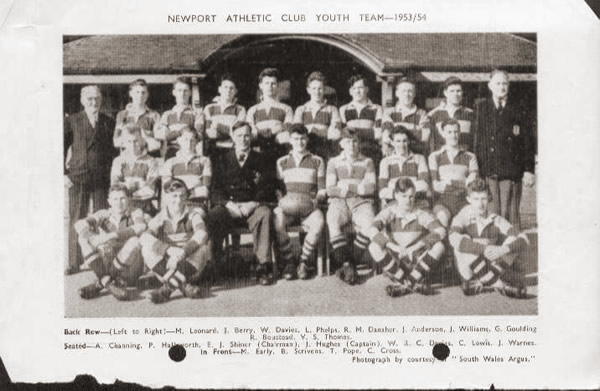 Injuries (including Roy Burnett) meant that Brian Jones was blooded at the age of 18yrs and he also played against the touring All Blacks. In fact this was the most notable match of the season and Newport with only 14 fit men put up a tremendous show to lose by goal kicks 6 v 11. Ken Jones was leading try score with 17 while Lyn Davies (33) and John Lane (32) led the appearances.