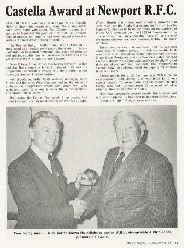 Ken Davies was again top try scorer with 16 and in doing so joined the elite band of players who have scored more than 100 tries during their Newport careers.