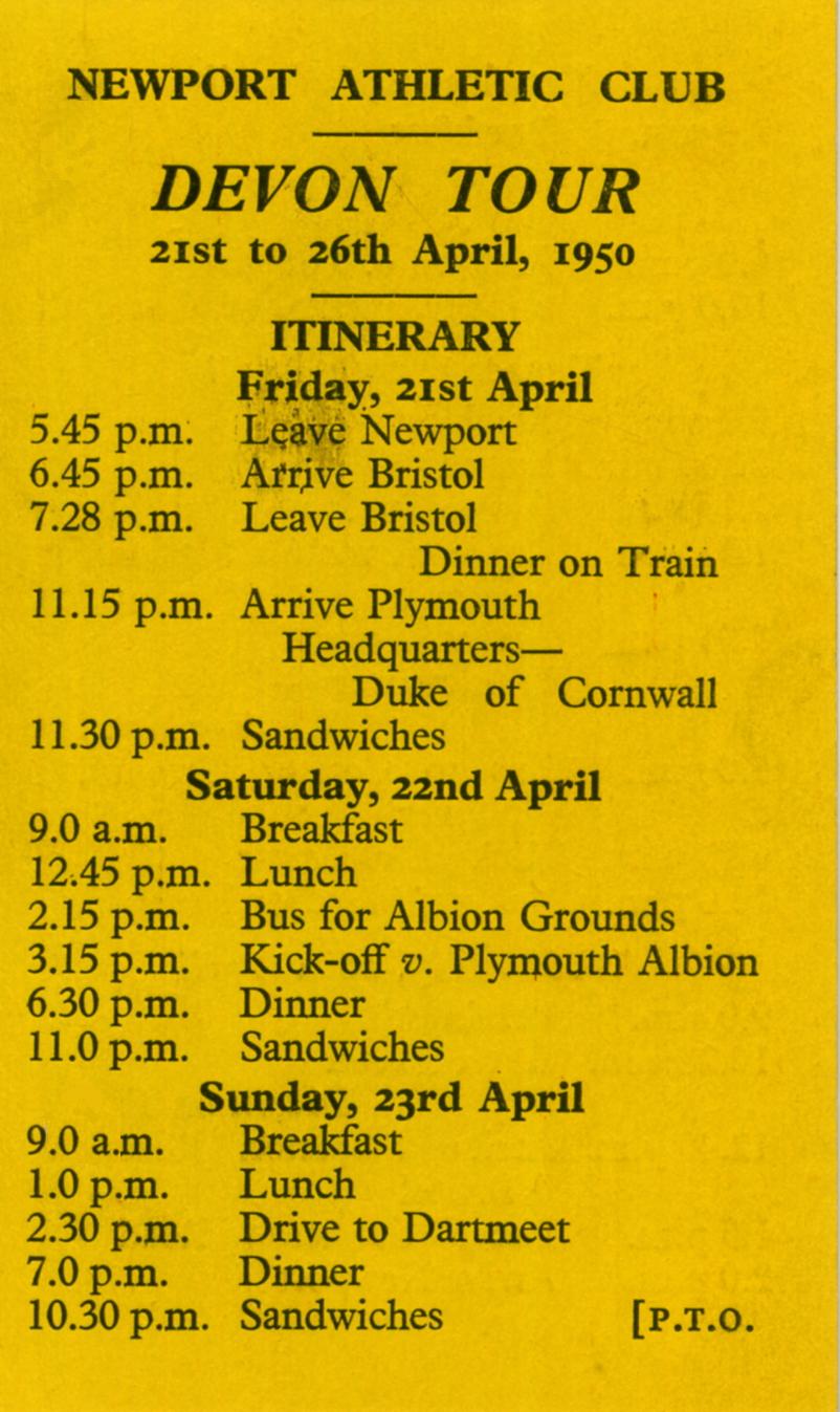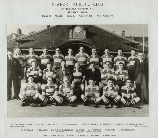 Hedley Rowland was asked to continue as captain in 1949-50 but sadly was taken seriously ill and L. E. T. Jones took over a difficult job after Newport beset by injuries had lost 7 of their 14 games by mid-December. 'LET' proved to be an inspiring captain and led Newport to a magnificent recovery and Newport only lost 1 further game. During this period Newport, and it has to be said Cardiff, were two of the most attractive teams in the country.